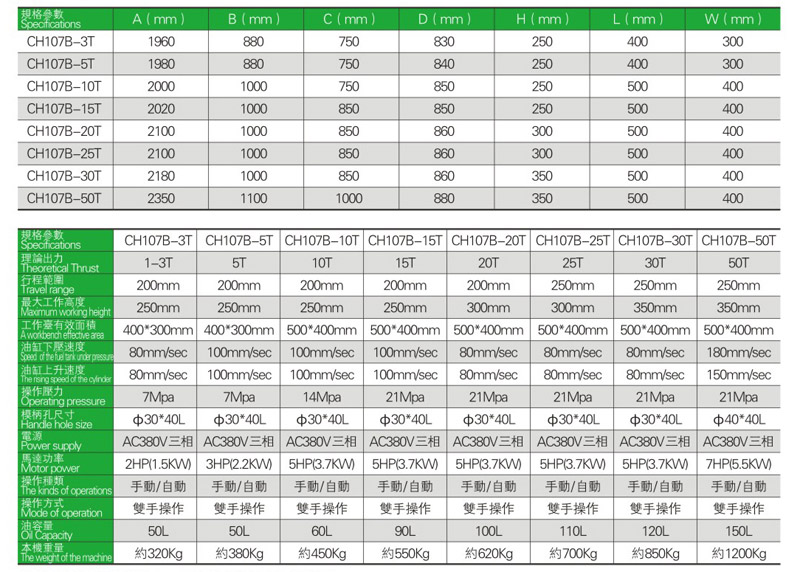 CH107B四柱油壓機係列特點及優點