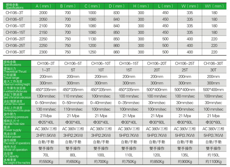 CH106 C型精密油壓機係列特點及優點